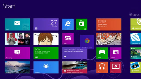 در شروع کار ویندوز 8 ، شما با مجموعهای از کاشیهای زنده و فعال روبرو خواهد شد، که هر کاشی معرف یک نرمافزار است. برای اجرای هر نرمافزار بر روی آن کلیک کنید. اگر میخواهید کاشیها را جابهجا کنید، کلیک چپ ماوس را بر روی کاشی مورد نظر نگه داشته و آنرا به مکان دلخواه بکشید .