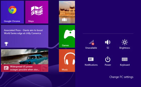 صفحه تنظیمات Charm علاوه بر موارد ذکرشده ، به کاربر امکان دسترسی به پنجره آشنای Control Panel را برای دسترسی به تنظیمات گوناگون سیستم میدهد. اما پیش از آنکه وارد جزئیات کنترل پنل شوید، به پنجره Settings Charm باز گردید و در قسمت پایین کلید Change PC Settings را بیابید. این منو امکانات زیادی را در اختیار کاربر میگذارد . تغییر لاکاسکرین و تغییر عکس پسزمینه صفحه استارت، مدیریت اطلاعرسانیها ( Notifications ) و حریم خصوصی در ویندوز، و معرفی دستگاههای جانبی نظیر چاپگر، بخشی از امکانات گزینه Change PC Settings هستند.